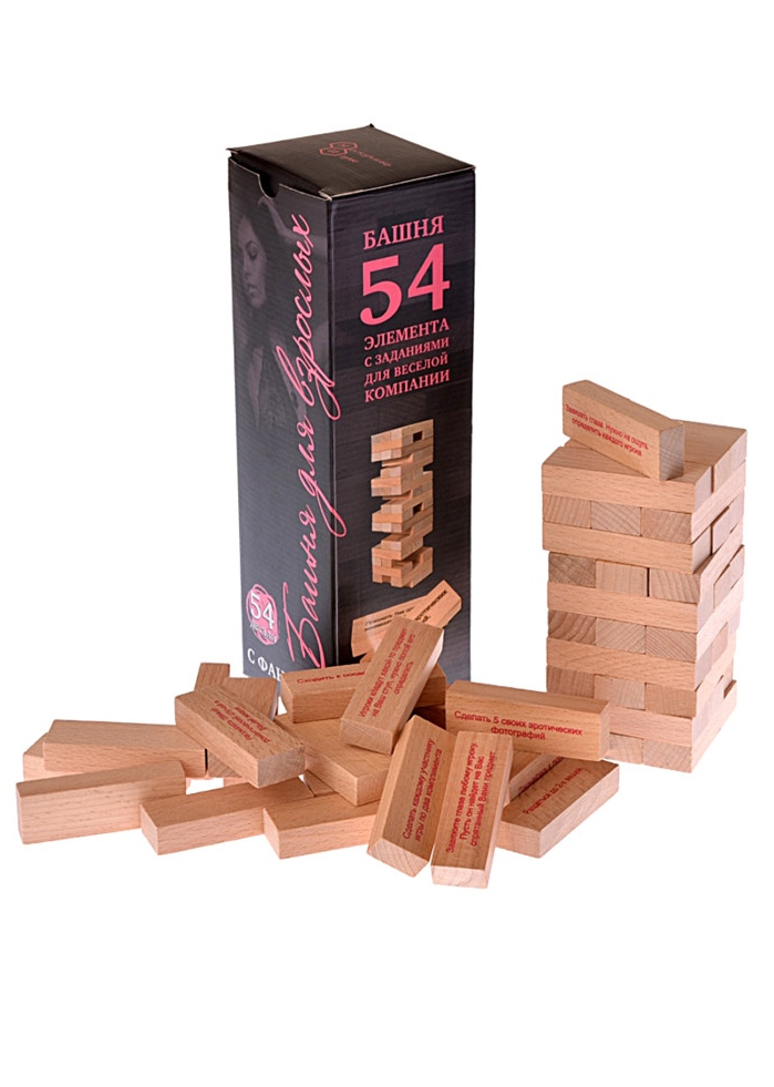Отличный подарок для себя, влюблённых друзей или довольно бесшабашной компании. Потому что помимо шумной и весёлой игры в башню, когда вам надо вытаскивать бруски снизу и ставить наверх, не роняя башню, здесь есть ещё и фанты! Недорогой, простой, но весьма приятный подарок ещё лучше принести с собой на день рождения имениннику, на небольшую пижамную вечеринку хозяйке дома, или виновникам торжеств на мальчишник или девичник.