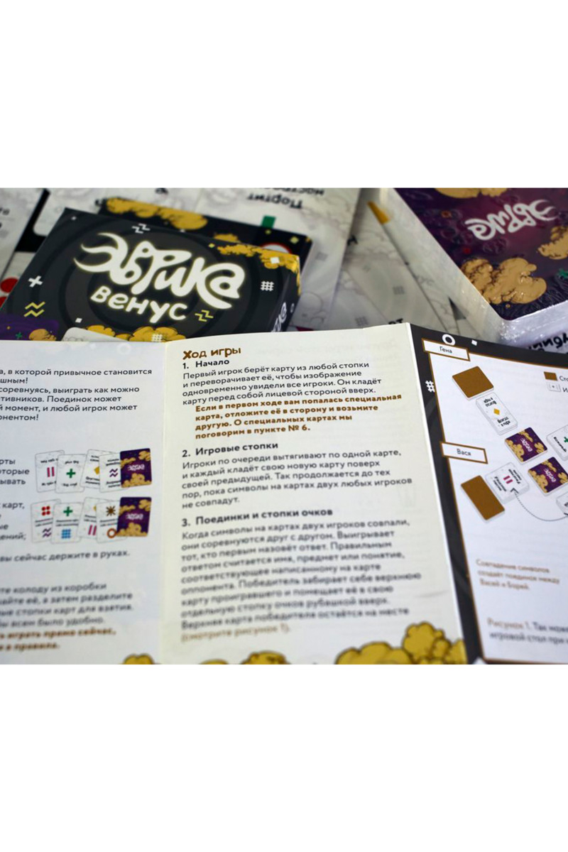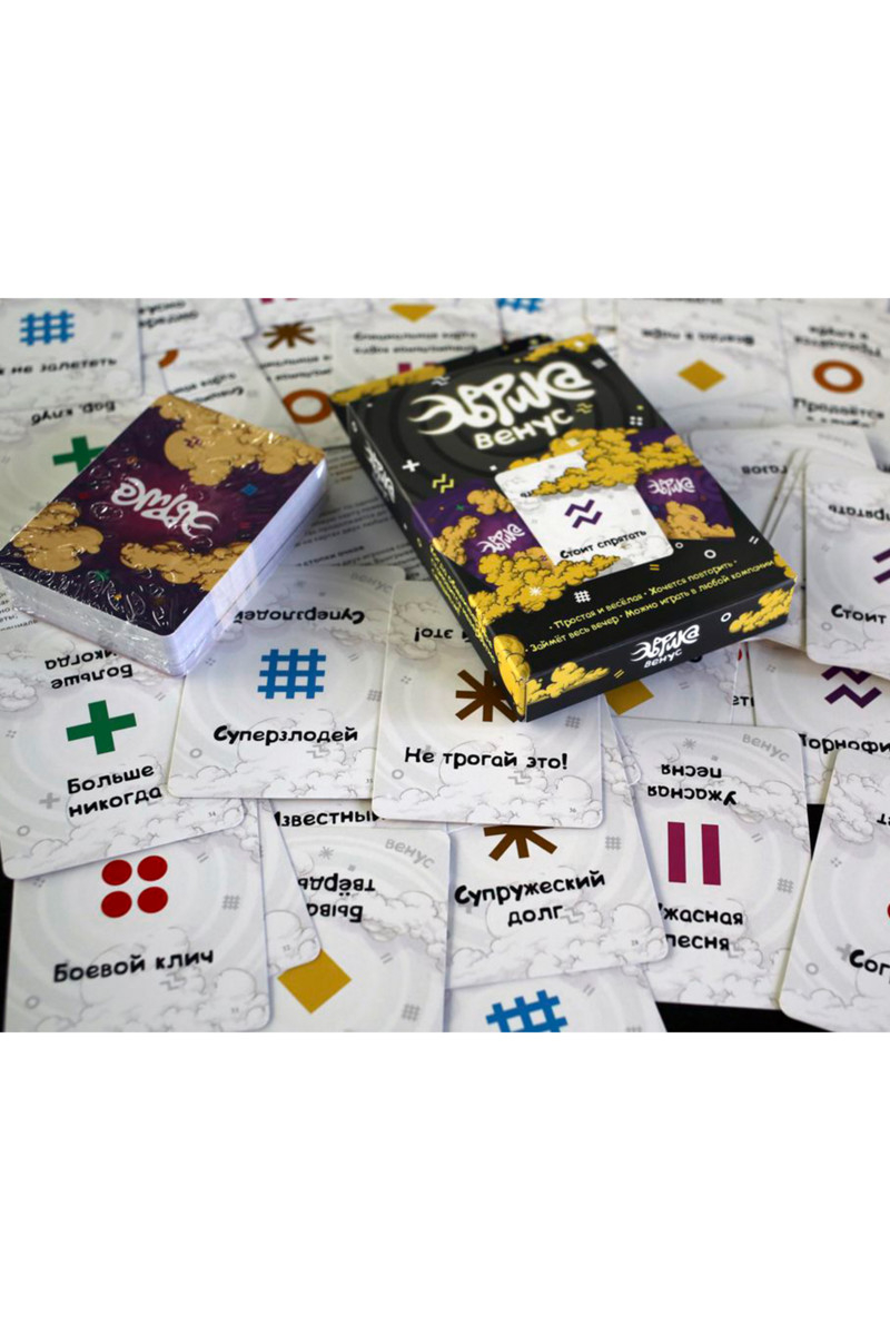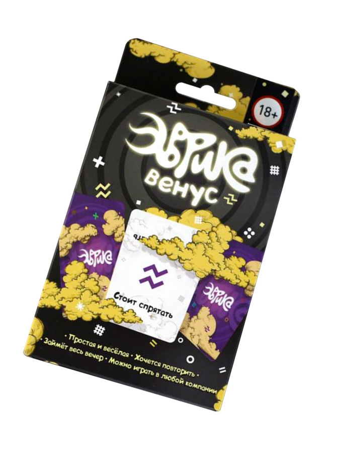 ''Эврика Венус«— самостоятельная игра серии с темами только для взрослых. Карточки от неё подходят и ко всем другим «Эврикам», если вы захотите смешать наборы