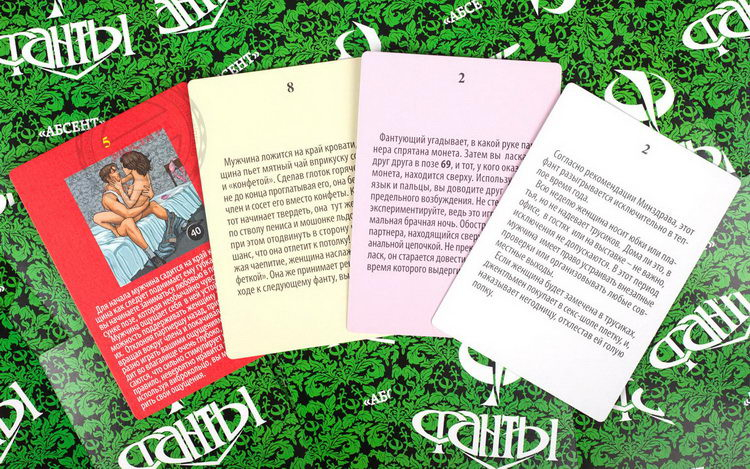 Игра включает 48 карточек-фантов с увлекательными и необычными игровыми заданиями. Самые «горячие» задания проиллюстрированы уникальными рисунками наиболее чувственных сексуальных поз, с объяснением их преимуществ и особенностей, ведь очень часто пресыщенность объясняется однообразием.