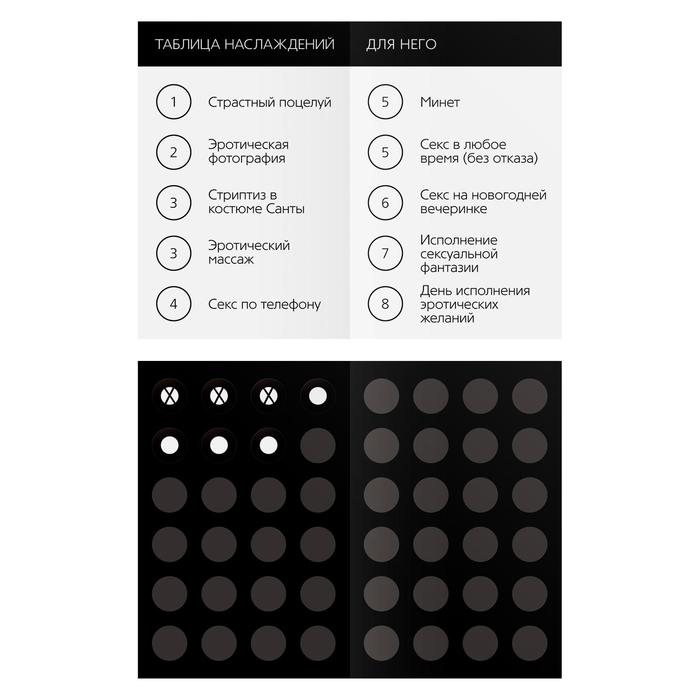 Внутри вы найдете карты с откровенными заданиями и таблицу наслаждений, которые доведут вас до экстаза.