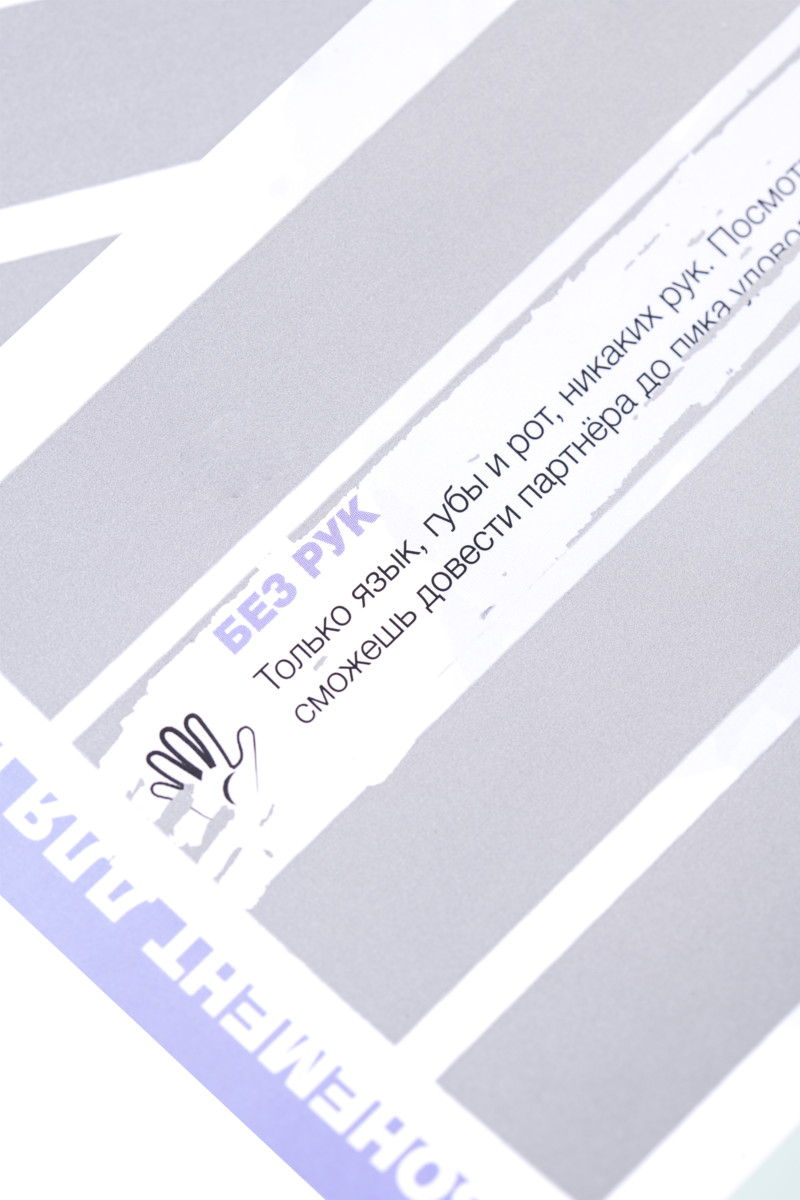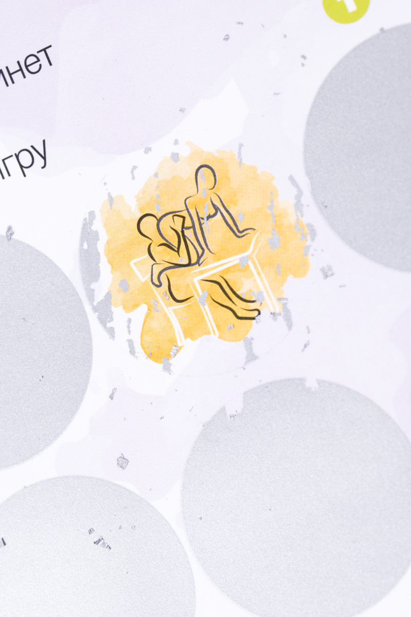 Специальный скретч-плакат содержит 90 эротических поз, 3 уровня сложности и 32 бонусных задания. Выполняйте задания и набирайте максимальное количество баллов, чтобы пройти путь от новичков к профессионалам. Азартная игра позволяет каждому участнику открывать для себя новые грани удовольствий и демонстрировать способности. Игра способна пощекотать нервы, ведь все позы скрыты защитным слоем, а общий результат зависит от вклада каждого участника. Если считаете себя продвинутым игроком, начинайте сразу с третьего уровня. Или продвигайтесь по карте постепенно, создавая свой неповторимый индивидуальный путь.