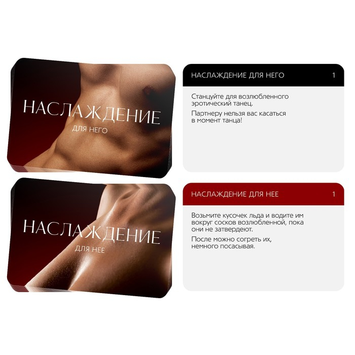 Определите, кто начнёт игру. Если это девушка, то она вытягивает карточку из колоды «Для неё». Если это мужчина — из колоды «Для него». Что делать дальше? Зачитывать фант и выполнять его.