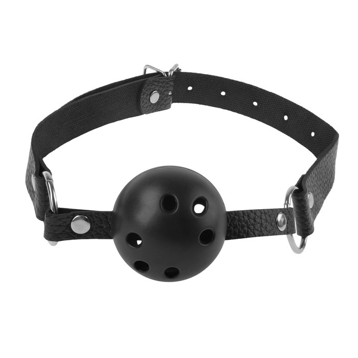 1. Дышащий кляп в виде шара, который крепится за счет ремешка и имеет регулировку размера. С помощью этого кляпа вы можете заставить своего партнера молчать, не бойтесь ваш партнер сможет спокойно дышать, так как в кляпе есть дырочки.