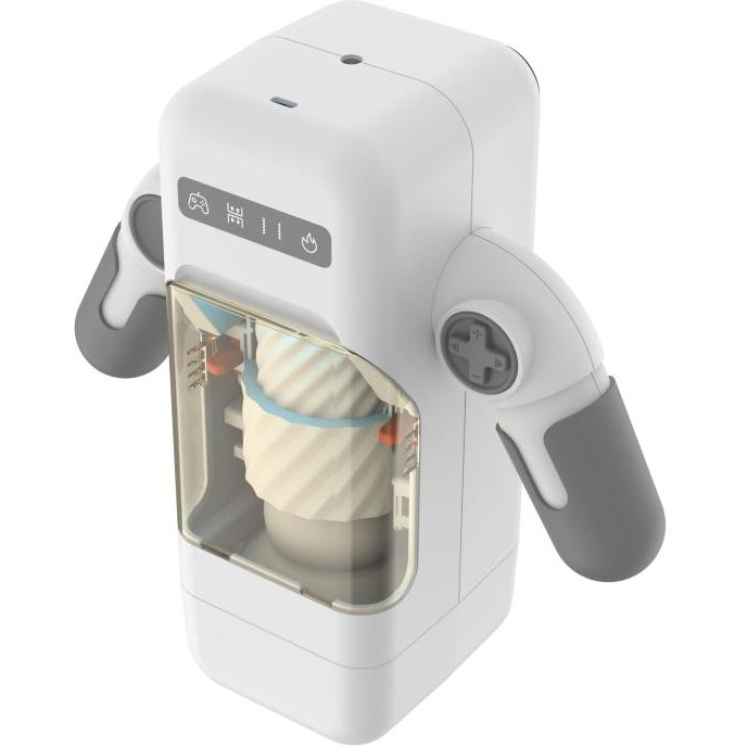 Game cup- это твой инновационный мастурбатор в виде игрового джойстика, стильный дизайн был разработан в Калифорнии, он не выдаст своего предназначения, даже если разместится на полке в твоей комнате. Ручки корпуса поворачиваются на 45 градусов, поэтому его будет удобно использовать в любом положении. Игрушка обладает 10 режимами абсолютно бесшумной вибрации, 10 режимами невероятно приятной пенетрации, а также двухуровневым нагревом до 42. Все режимы отображаются на экране, что делает управление максимально легким и понятным.