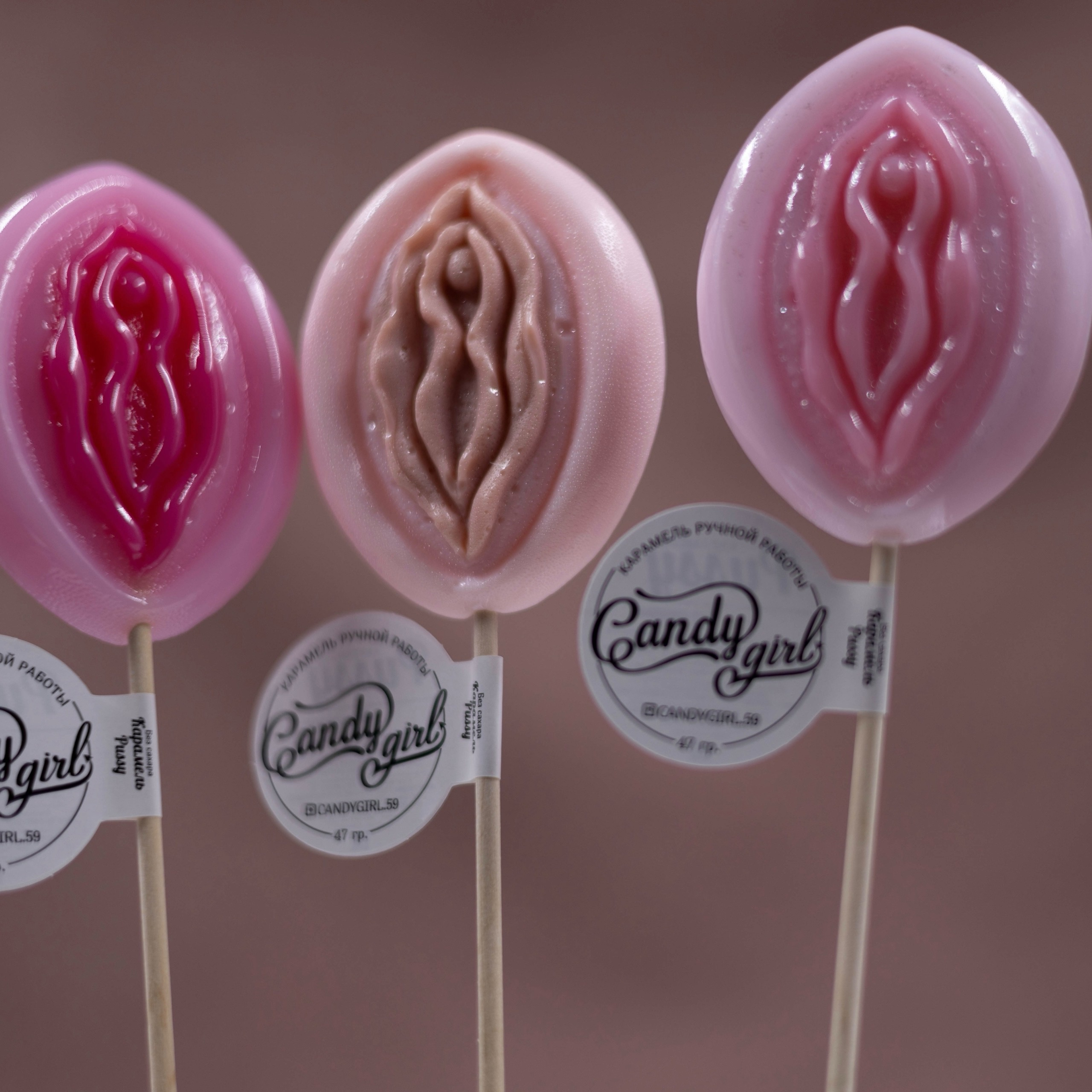 Как она выглядит? Нежная карамель в виде вагины, с потрясающим клитором в форме жемчужины! Это не просто сладость, это произведение искусства, которое можно "лизать" на палочке!