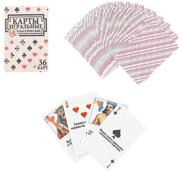 Эти карты – полный улёт! На первый взгляд, они кажутся обычной классической колодой, но нет! Мы раскрасили привычные изображения и добавили к ним пикантные комментарии-фанты. Теперь любимая игра в дурака станет ещё азартней и веселей.