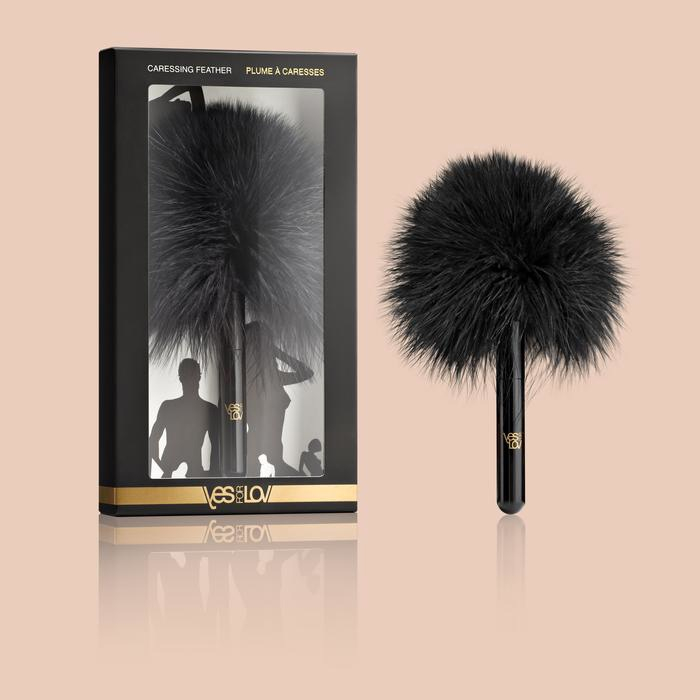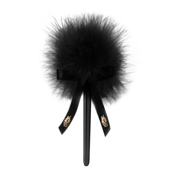 Пуховка из натуральных перьев черного цвета со стильной ручкой с бантиком и золотым тиснением прекрасный аксессуаром для чувственных игр во время прелюдии. Мягкое, натуральное перо вызовет множество невероятных ощущений от нежных прикосновений.