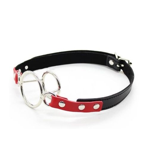 Кляп-рамка для выражения покорности. Прочные металлические кольца на регулируемых ремешках. Диаметр малого кольца 3 см, диаметр большого кольца 4 см.