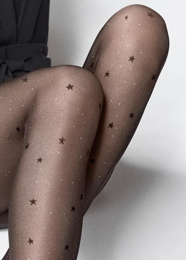Да конечно звезду с неба тяжело достать, да и зачем её доставать, если вы сама звезда. В этих колготках можно выступить очень эффектно. Их фантазийный рисунок только раскрасит вашу интересную жизнь. Маленькие звездочки и точечный золотой люрекс рассыпятся по вашим стройным ножкам, мы гарантируем эти колготки привлекут внимание каждого.