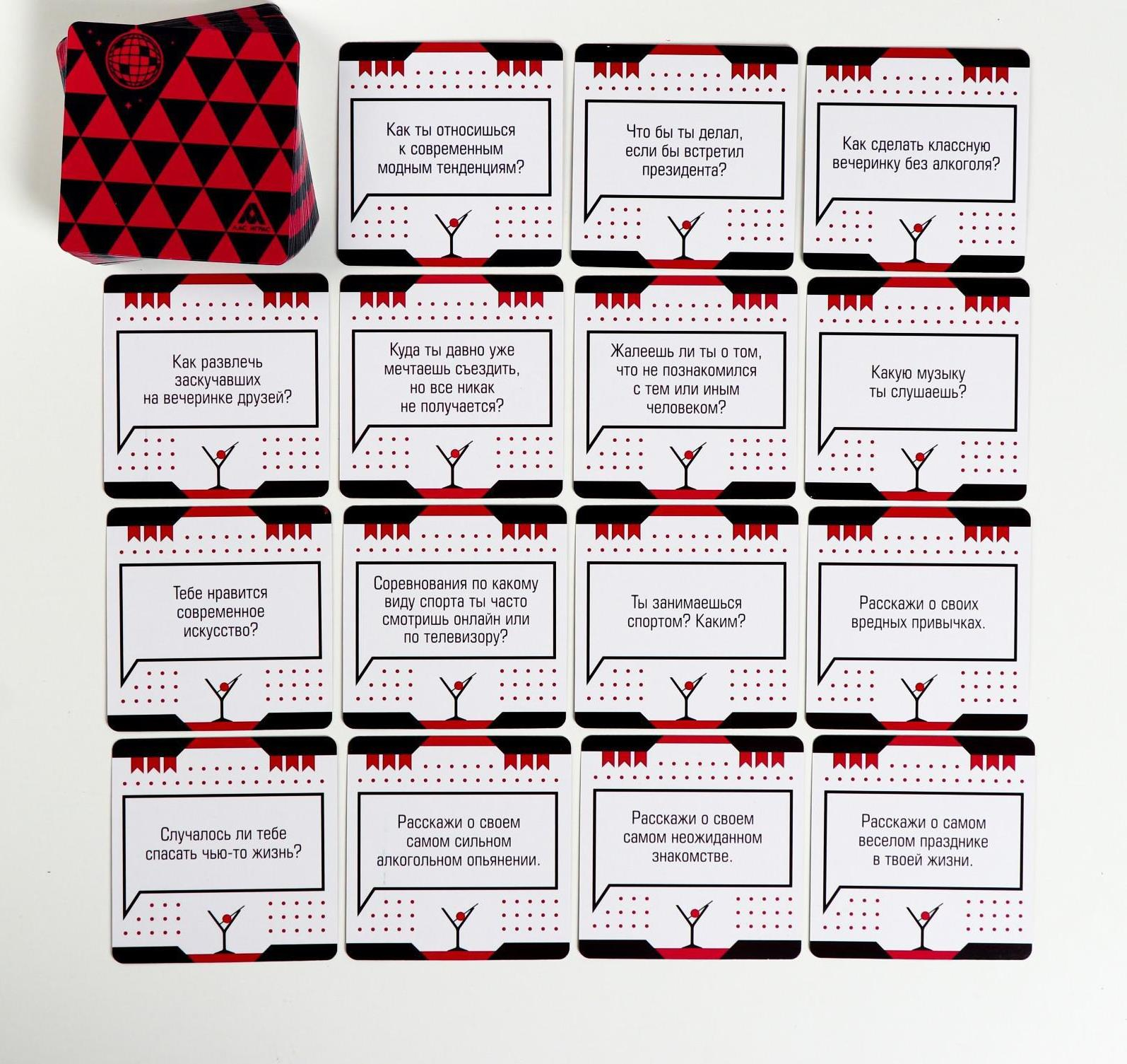 По очереди вытягивайте карты из колоды и зачитывайте вопрос. Далее все по очереди на него отвечают, если им есть что рассказать. Никаких очков, соревнований и определения победителей — просто карты для развития диалога.