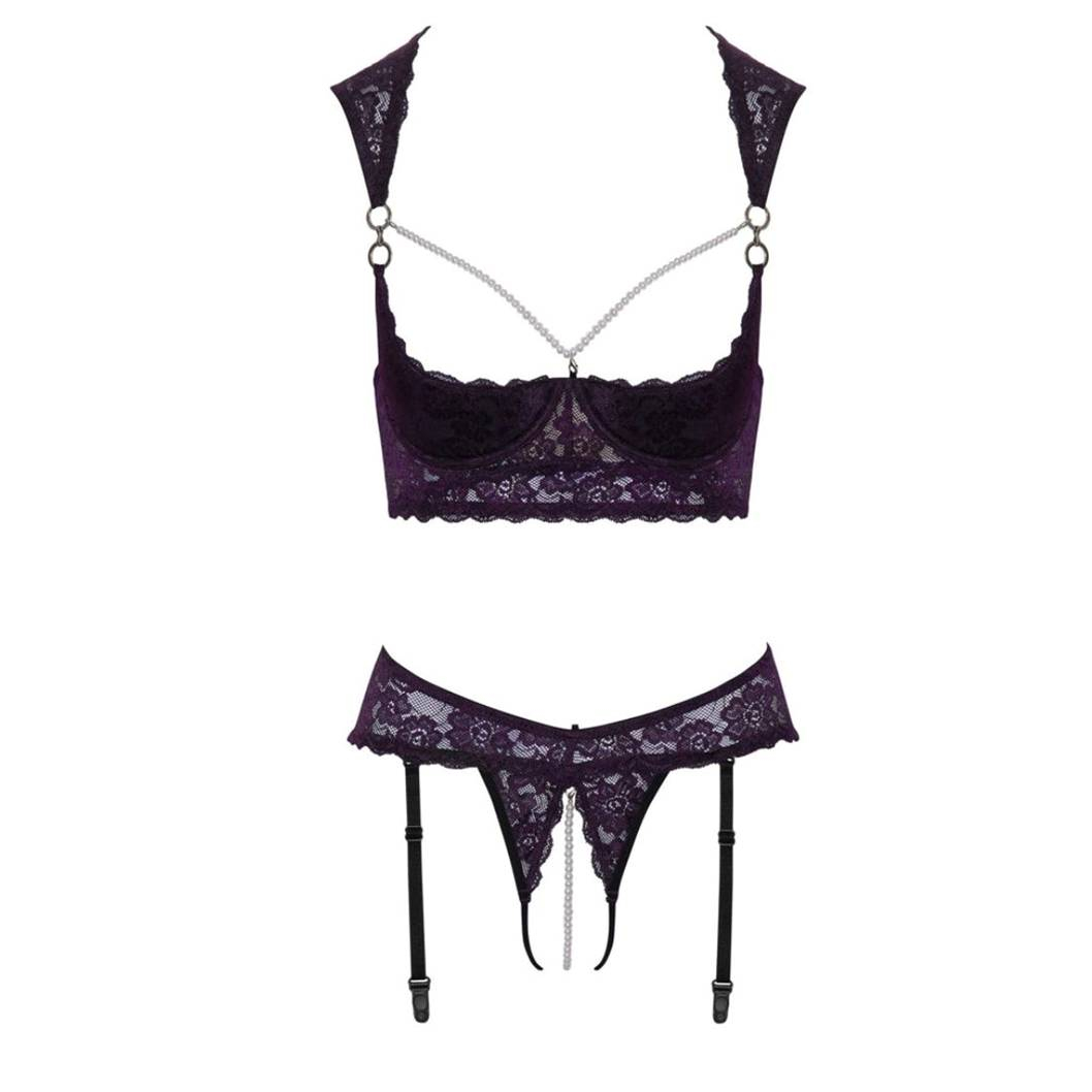 Эти открытые стринги со шпажками не только выглядят потрясающе, но и отлично смотрятся в комплекте Ouvert! А темно-фиолетовая-черно цветовая гамма придает этому комплекту элегантно-драматичный вид, который идеально подчеркнет вашу удивительно женственную внешность.