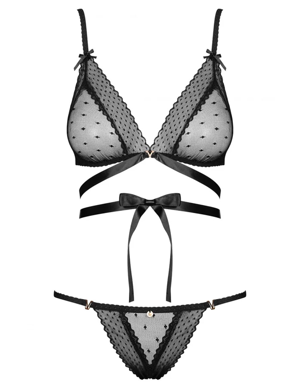 Вы ищете очень… горячий набор? Очаровательное сочетание точек, сексуального кроя и игривых лент в замечательном комплекте