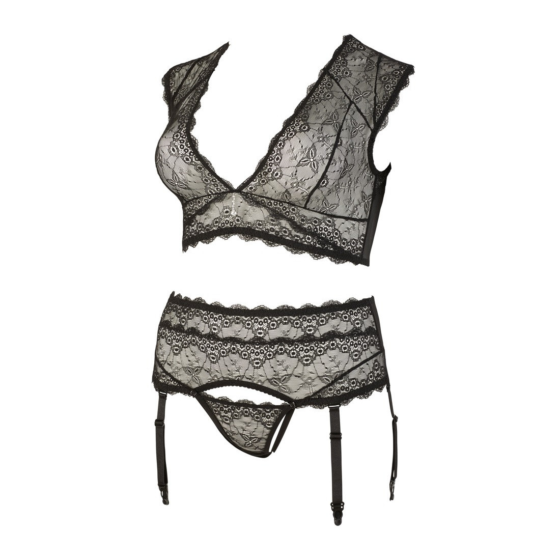 Мягкий бралетт и пояс-трусики с доступом с регулирующимися подтяжками из мягкого эластичного кружева.