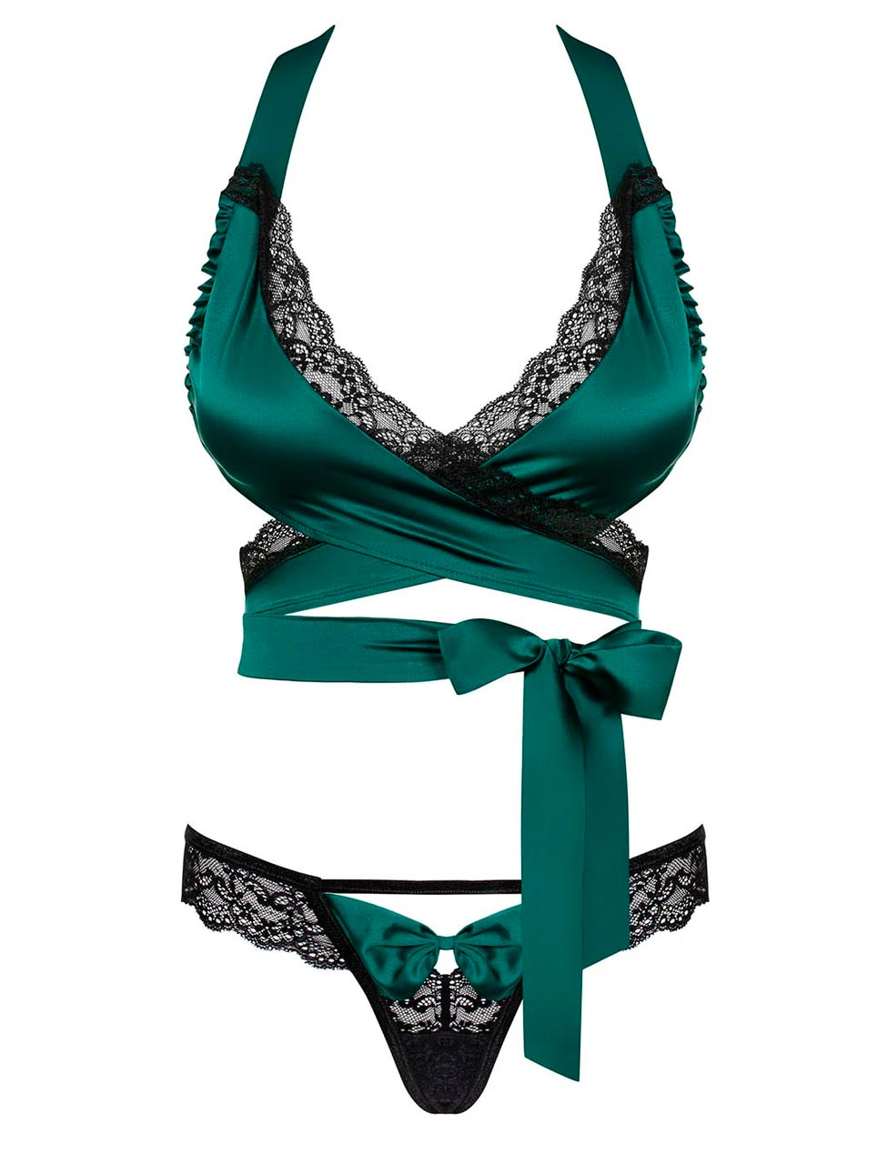 Необычайное сочетание кружева и атласного материала, глубоко выреза и соблазнительной шнуровки - это как аттракцион для соблазнения. И это ещё не все, яркий и насыщенный изумрудный цвет и игривые бантики..... согласитесь впечатляет, пробуждает и побуждает!!!! Вас ждет удивительное приключение в мир секса, страсти и оргазма.