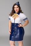 Костюм стюардессы Devon от бренда Candy Girl — это продуманный до мелочей комплект для тех, кто хочет создать аутентичный авиационный образ. Модель в насыщенном синем цвете (размер XXL) включает классическое платье и головной убор, которые вместе формируют завершённый сценический наряд.