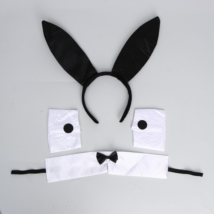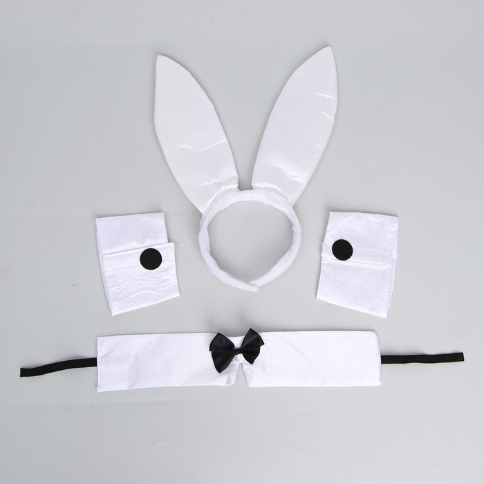 В комплекте идут заячьи шки на ободке, манжеты и воротничок с бабочкой.