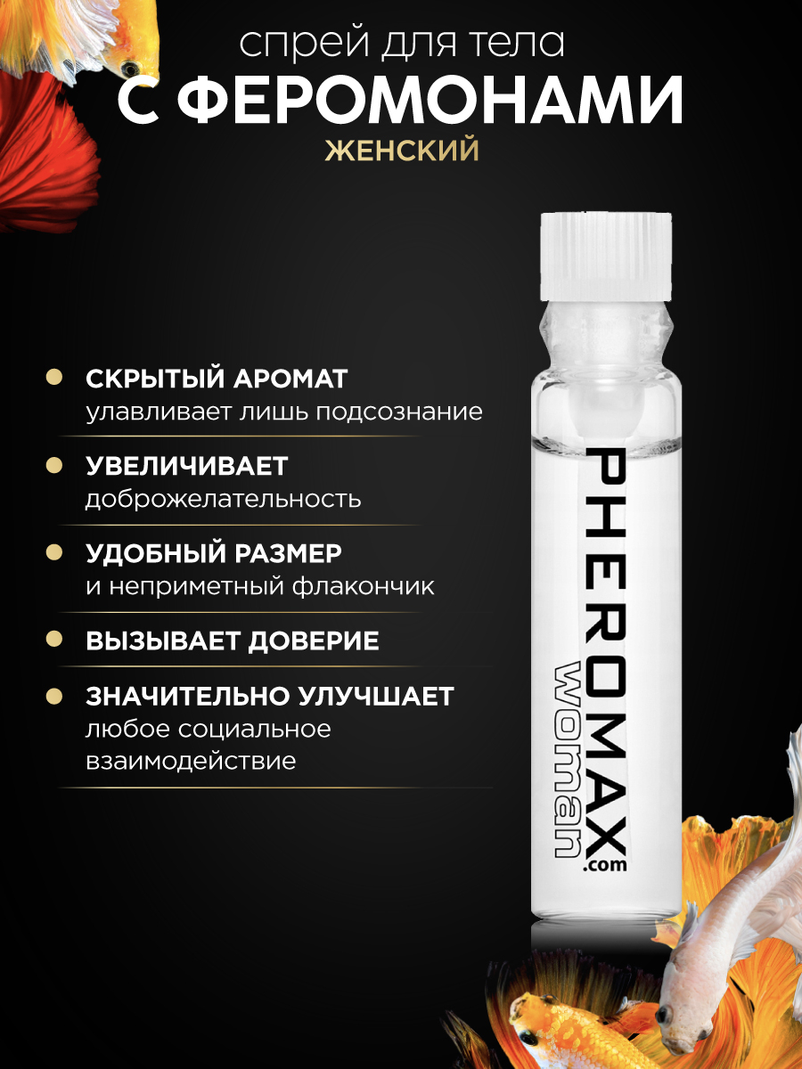 Женский концентрат феромонов Pheromax Woman содержит андростенол и андростенон, также в его состав входит уникальное вещество - копулин, он содержится во влагалищном секрете женщины и выделяется во время овуляции. Данное вещество способно многократно усиливать женскую привлекательность, а также увеличить выработку собственных гормонов, что может способствовать повышению либидо женщины.