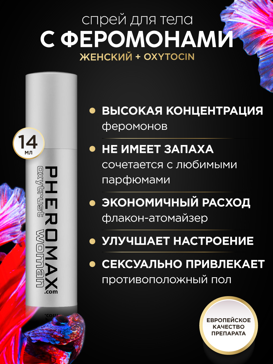 Женский спрей с феромонами Pheromax Woman не обладает запахом, и вы можете использовать его с любимыми духами. Вовсе не уловимый аромат только концентрата – совершенное оружие для обольщения! Насладитесь полностью открытой близостью!