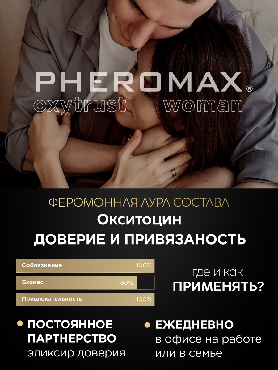 Представь, как мир вокруг тебя меняется. Мужские взгляды, раньше скользившие мимо, теперь притягиваются к тебе, словно магнитом. Забыть о скромности, позволить себе быть желанной, властной, ощущать свою силу вот что дарит тебе Pheromax Woman.