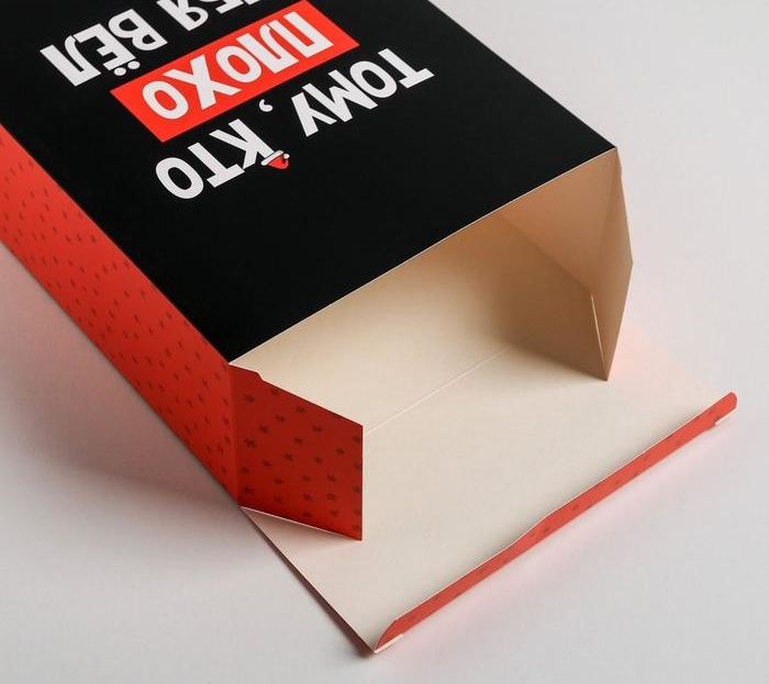 Коробка выполнена из картона, с жизненной привлекающей надписью.