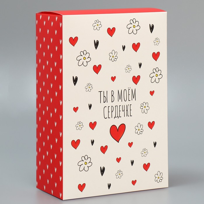 Любой подарок требует упаковки, именно она привлечет внимание создаст интригу, а надпись поднимет настроение. Коробка открытка с надписью ты в моем сердечке.