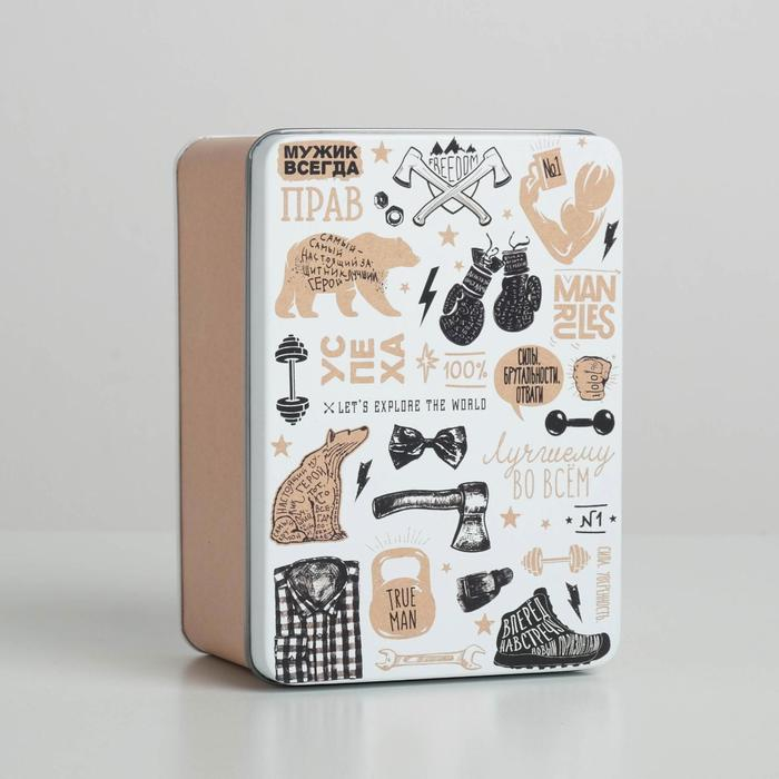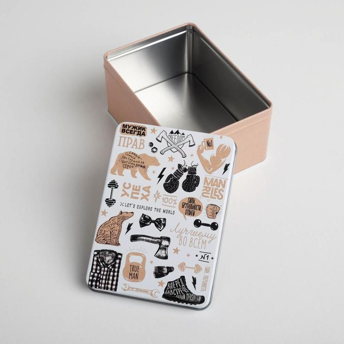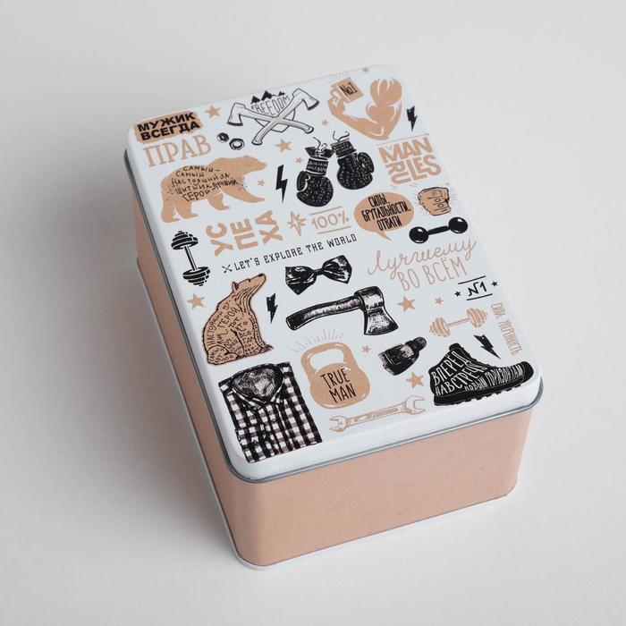 На этой коробке уже есть подсказка, что в неё стоит положить для настоящего мужика: