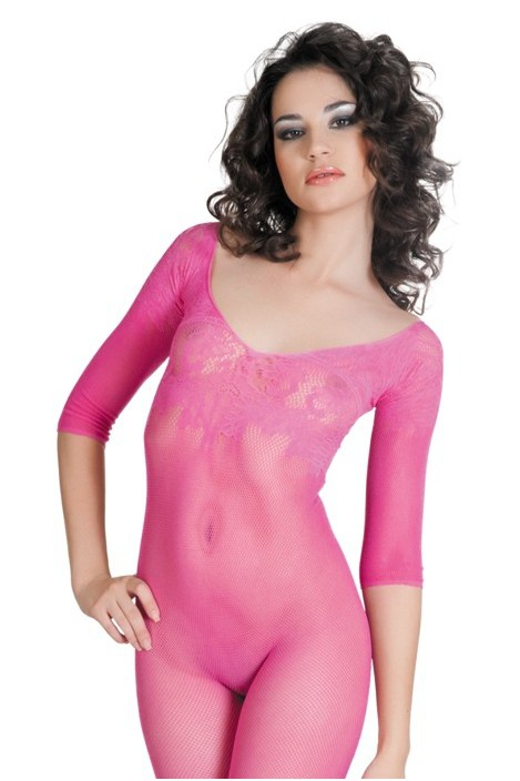Бесшовный костюм-сетка с рукавами, лиф украшен цветочным рисунком. Прекрасно тянется, облегает и подчеркивает изгибы.