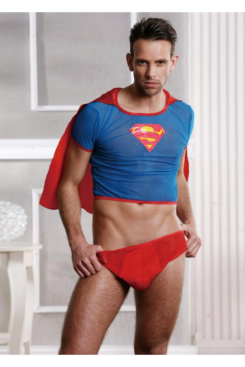 Костюм Супермена из коллекции эротического белья Candy Boy выполнен из эластичной ткани. В комплект входят трусы из сетчатого материала, в области полового члена сделана вставка из более плотной ткани. К футболке пришит плащ – неотъемлемый атрибут героя. Вы сможете придумать отличный сюжет ролевой игры, в которой герой спасет свою возлюбленную, взамен получив благодарность.