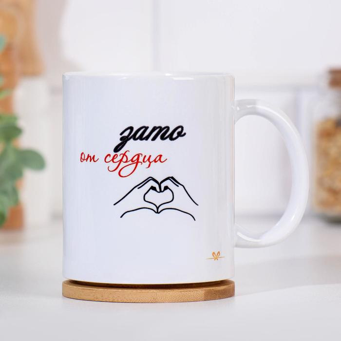 Кружка изготовлена из керамики. Рисунок нанесён методом сублимации, при котором краска проникает в верхний слой изделия. Поэтому изображение получается стойким.