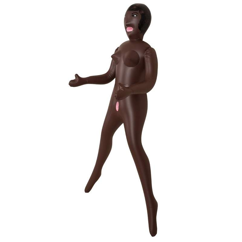 Выполнена кукла из качественного поливинилхлорида коричневого цвета. Лицо и черные волосы напечатаны. Водонепроницаема, с ней можно забавляться в ванной или под душем. Имеет 3 плотных отверстия, которые возбуждают, обнимают и ласкают пенис: открытый ротик, влагалище и анус. Перед использованием для достижения максимального скольжения рекомендуется обработать дырочки лубрикантом на водной основе.
