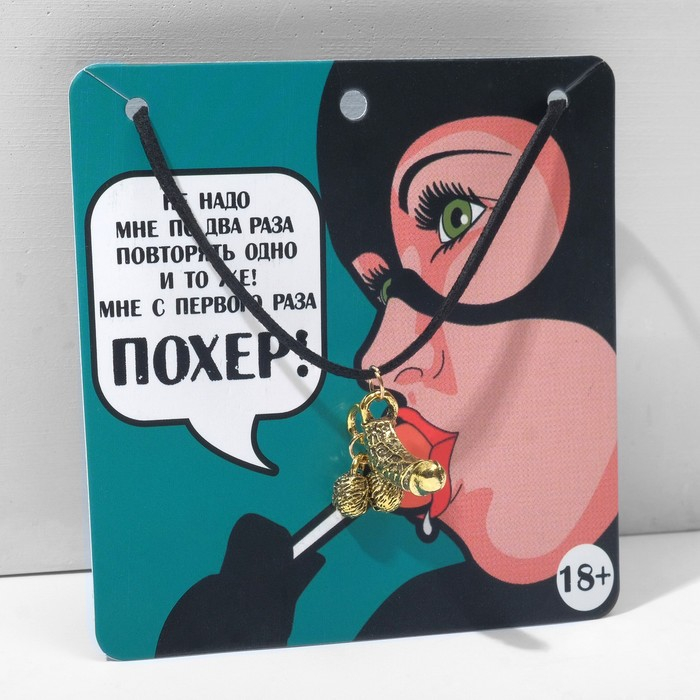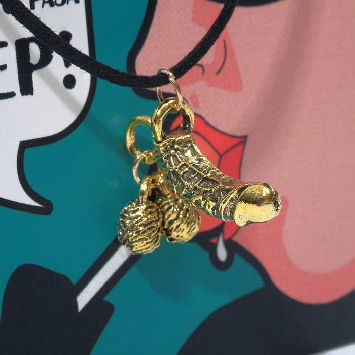 Подари такую подвеску девчонке-хулиганке. Кулончик в виде металлического члена с бубенцами, выполнен в золотом цвете на кожаном шнурочке. Такого ещё не было на её шее.