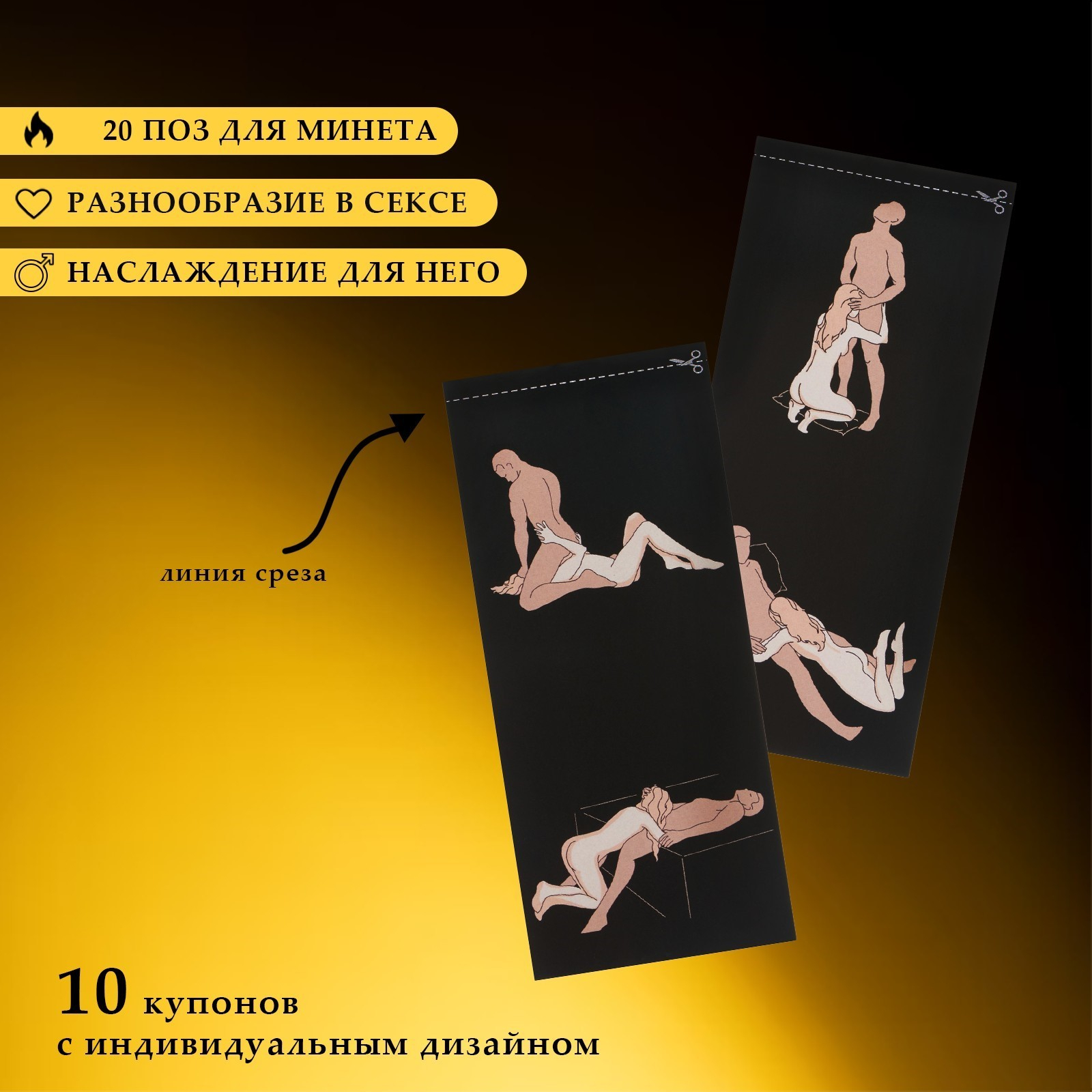 На каждом купене оригинальные иллюстрации поз, в которых вы можете получить головокружительное удовольствие во время минета. Забудьте про однотипные развлечения и пробуйте разное.