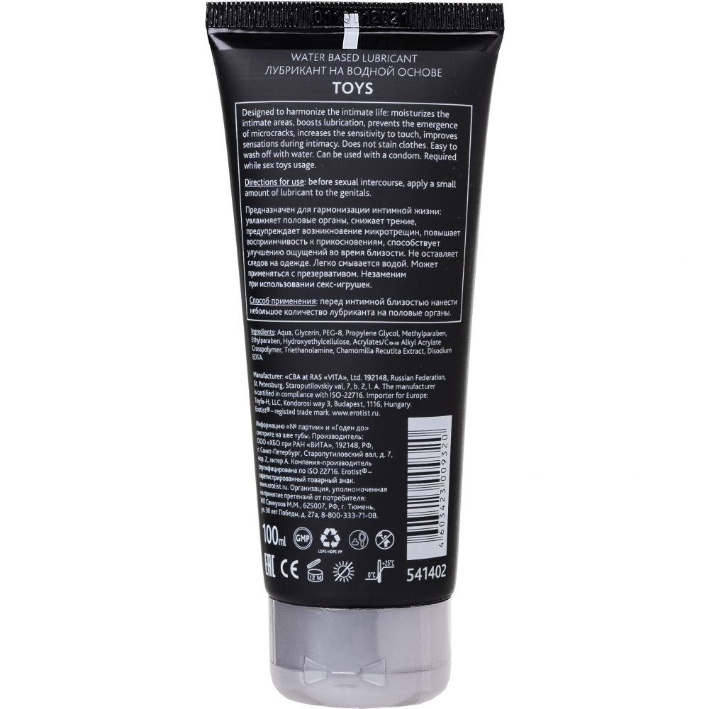 Erotist Toys – универсальный лубрикант на водной основе, специально разработан для использования с интимными игрушками. Это средство обеспечивает достаточное скольжение, защищая нежные слизистые половых органов от повреждений, возникающих в результате трения. Гель обеспечивает защиту микрофлоры и способствует поддержанию естественного уровня pH половых органов.