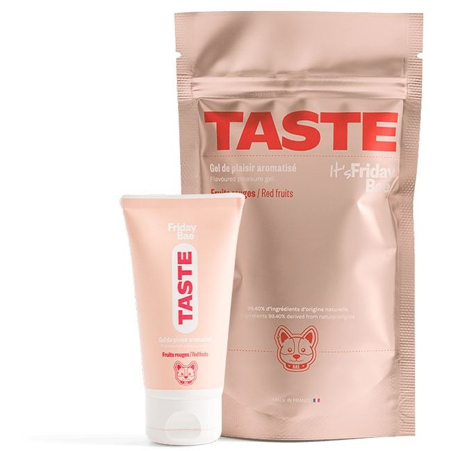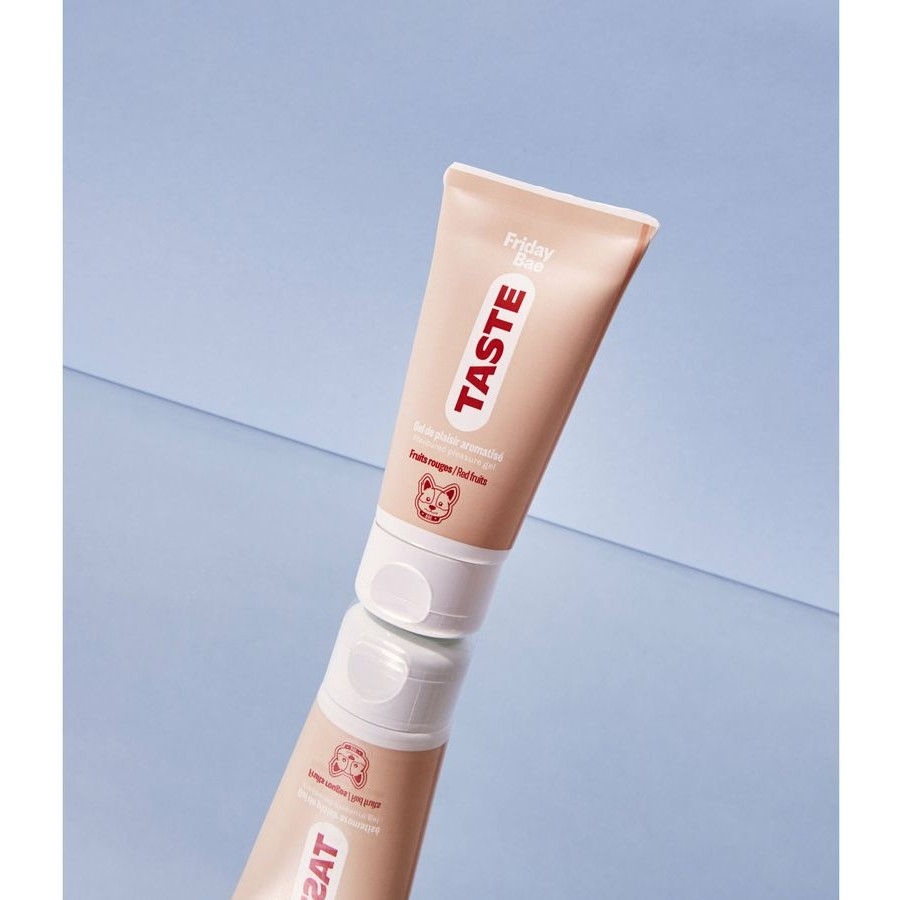 Friday bae taste - съедобный, ароматизированный лубрикант на водной основе. Ваши шаловливые руки могут нанести его на все тело партнера, включая ягодицы, губы, бедра… Оближите, это часть игры, потому что его фруктовый аромат восхитителен. Со вкусом красных фруктов, но без сахара.