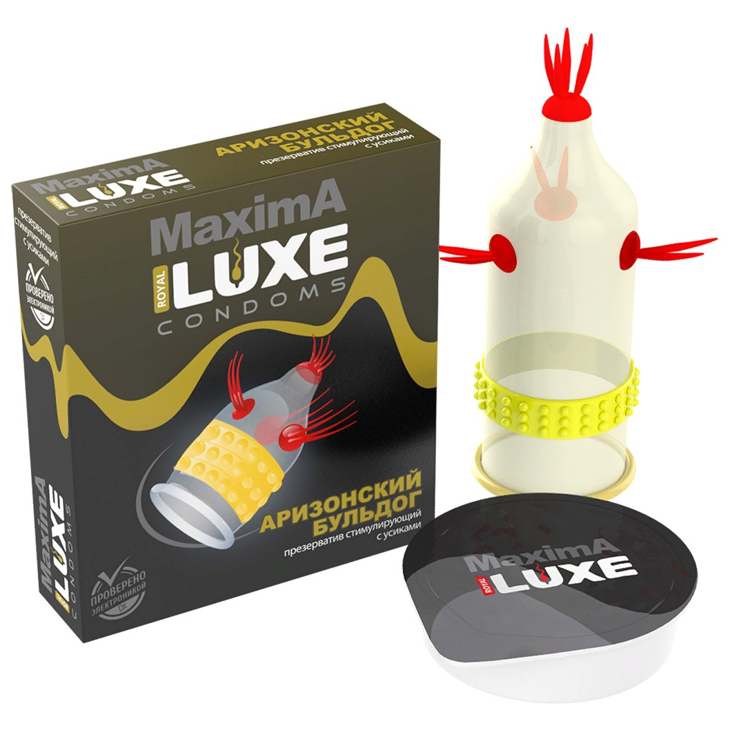 Тысячи российских мужчин и женщин уже оценили презервативы Luxe Maxima «Аризонский Бульдог». Благодаря разноформатным стимулирующим элементам в виде эластичным усиков и шариков, партнёрша получает незабываемые ощущения, а партнёру достаётся слава героя-любовника. Презервативы Luxe Exclusive «Аризонский Бульдог» — это гарантия отменного секса.