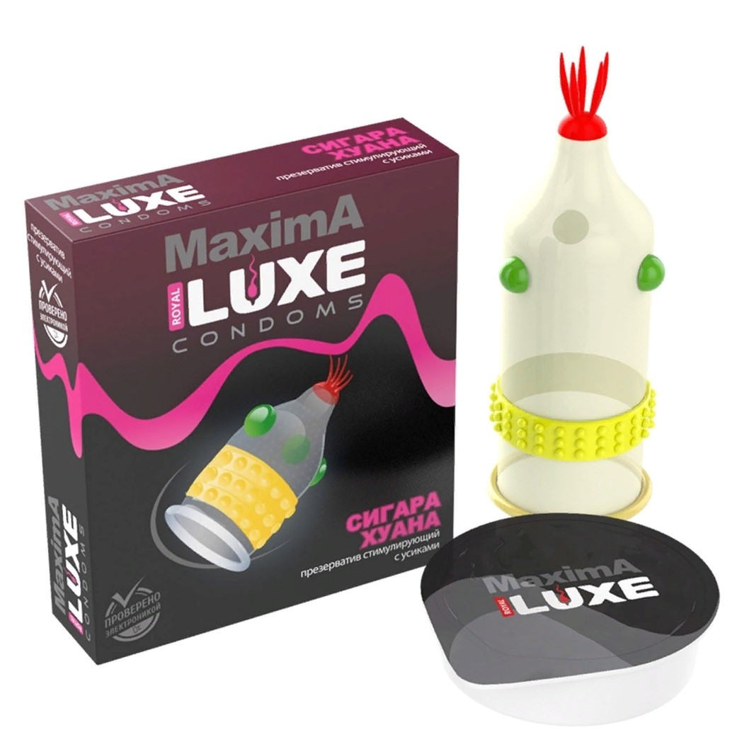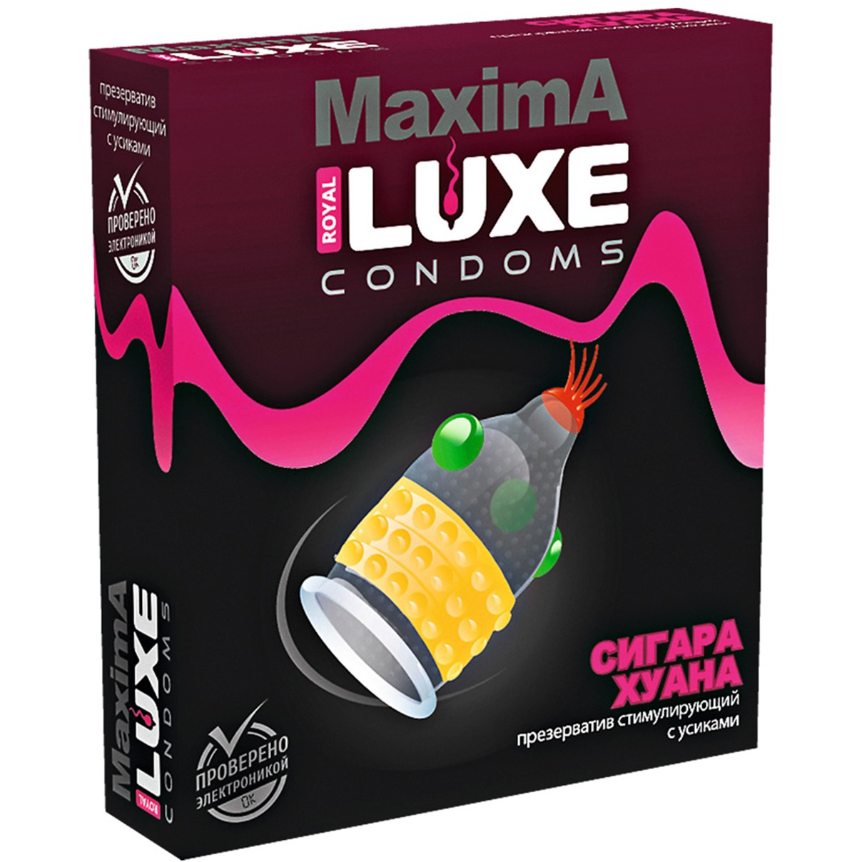 Уже по названию этих презервативов — Luxe Maxima «Сигара Хуана» — понятно, что страстному приключению точно быть. И действительно — эластичные усики, которыми унизана поверхность презерватива, так ярко и волнующе стимулируют эрогенные зоны партнёрши, что без поражающей воображение и захлёстывающей с ног до головы страсти никак не обойдётся!