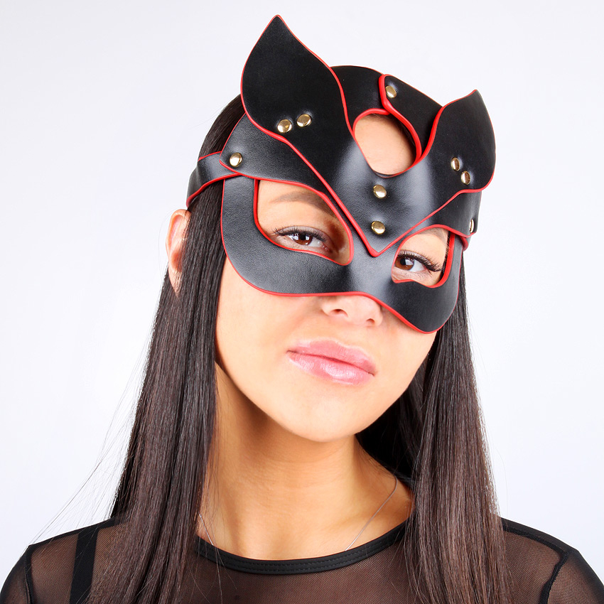 Эротический аксессуар отличается современным дизайном и высоким качеством исполнения. Выполнена маска из качественной искусственной кожи в черном цвете, края обработаны красной отделкой для контраста.