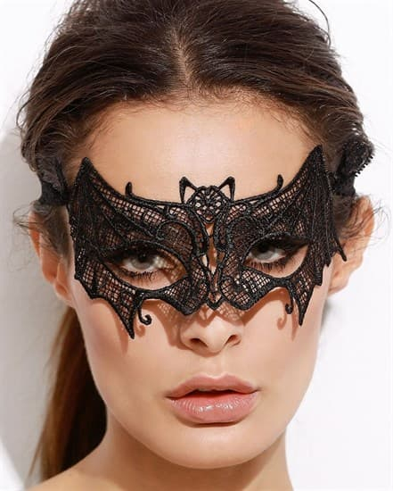 Ажурная маска летучая мышь, выполнена из кружевного шить, она мягкая и хорошо гнется, по-этому прекрасно сядет по форме лица. Маска крепится за счет атласных лент.