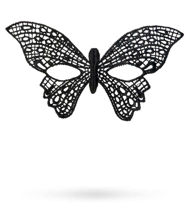 Восхитительная маска в форме бабочки станет великолепным дополнением к интимному костюму для тематической вечеринки. Аксессуар выполнен из нитей черного цвета, создающих эффектную ажурную конструкцию. Маска плотно облегает лицо, украшая его затейливым узором, который хорошо гармонирует с цветом кожи. Она практически ничего не скрывает, а делает линии лица еще более изящными и привлекательными. Плетение бабочка закрывает лишь область глаз и виски, что делает ее использование комфортным и естественным.