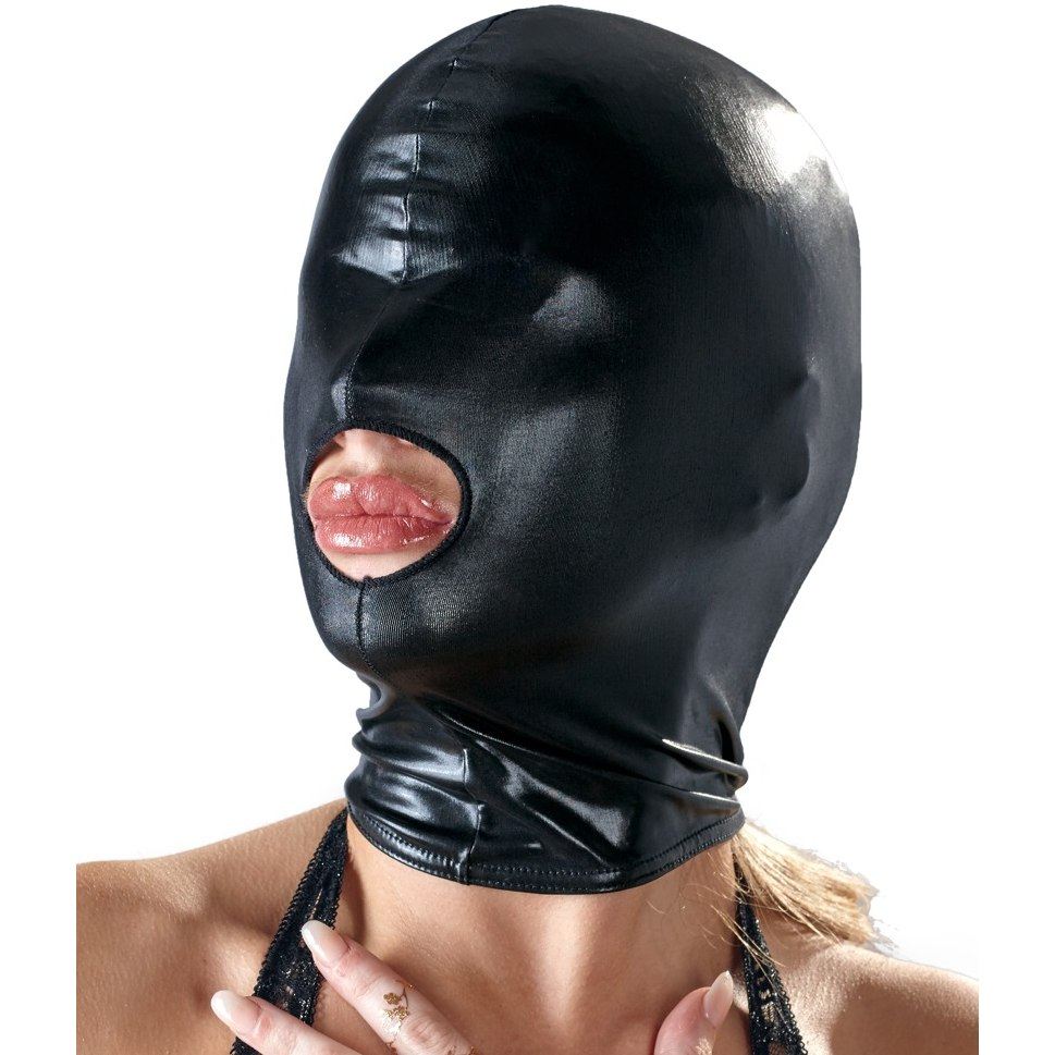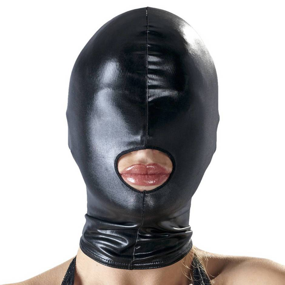 Приятная на ощупь плотно прилегающая сплошная маска со швом по центру и отверстием для рта изготовлена из эластичного материала.