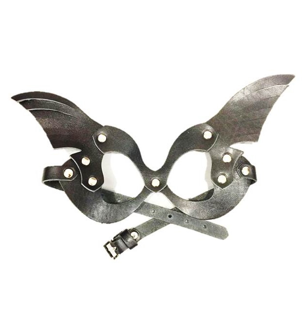 Маска изготовлена в ручную из натуральной кожи черного цвета.