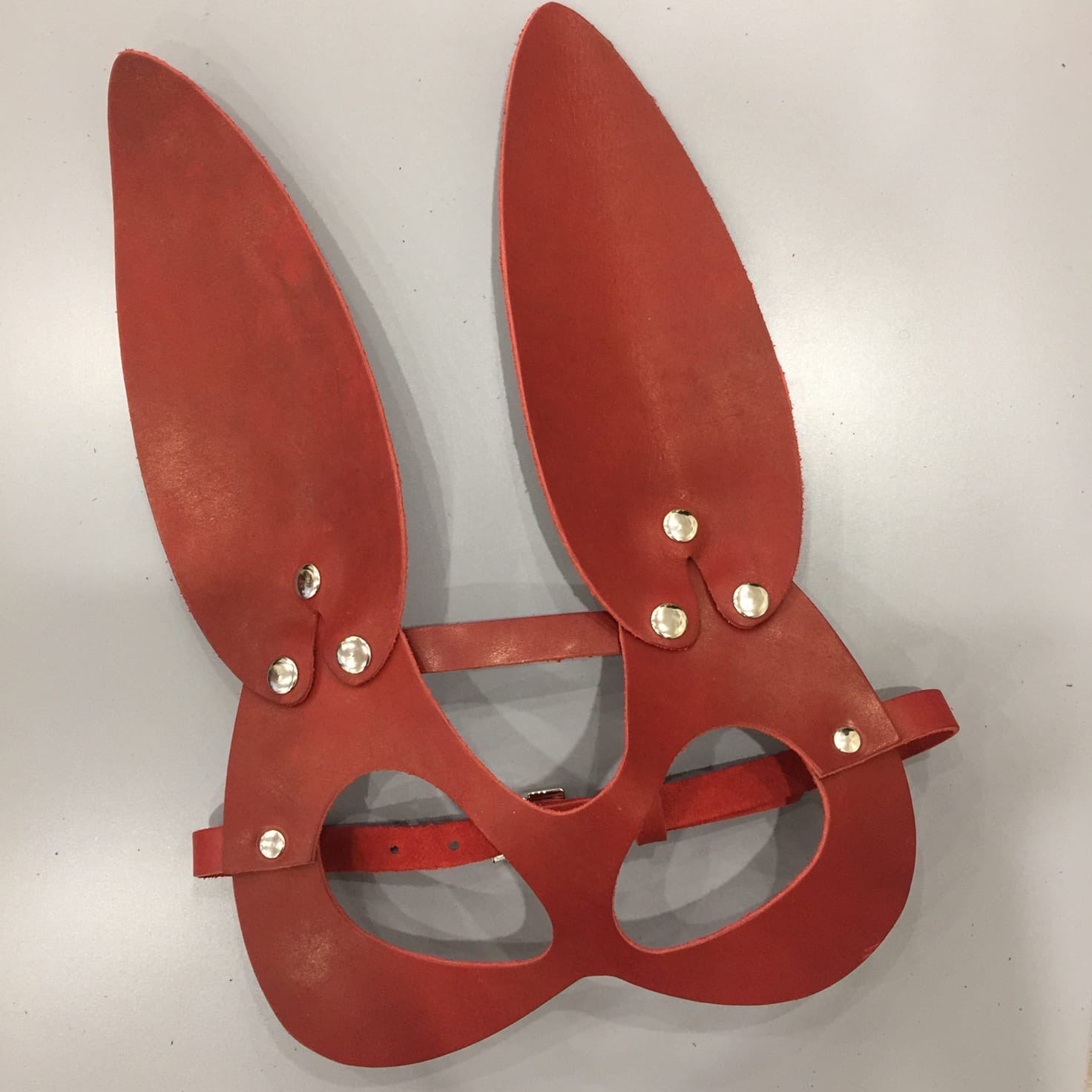 Маска зайка выполнен из качественной натуральной красной кожи.