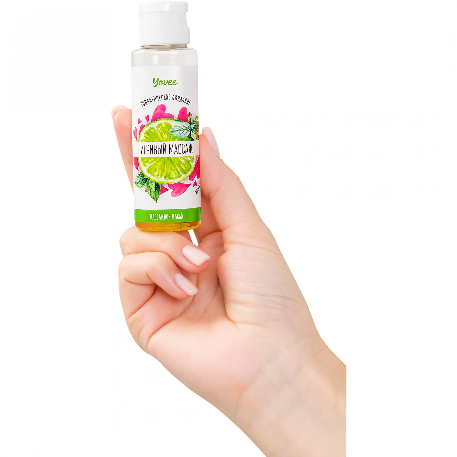 Масло для массажа Yovee игривый массаж с афродизиаком, с ароматом мяты и лайма - изысканный аксессуар для романтического свидания. Изготовлено из натуральных масел, которые питают, увлажняют, смягчают кожу и делают её шелковистой. Свежий цитрусовый аромат мяты и лайма остается легким шлейфом, напоминая о проведенных минутах блаженства. Благодаря праздничному дизайну упаковки масло отлично подходит в качестве презента.