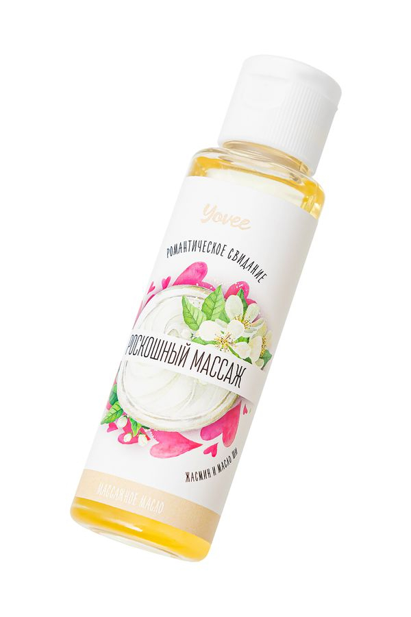 Масло для массажа Yovee Роскошный массаж с ароматом Жасмин и масло Ши - изысканный аксессуар для романтического свидания. Изготовлено из натуральных масел, которые питают, увлажняют, смягчают кожу и делают её шелковистой. Пряный аромат жасмина и масла ши остается легким шлейфом, напоминая о проведенных минутах блаженства. Благодаря праздничному дизайну упаковки масло отлично подходит в качестве презента.