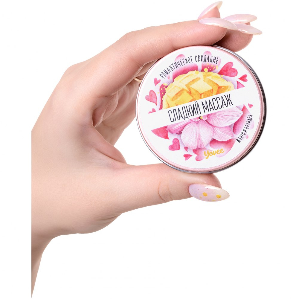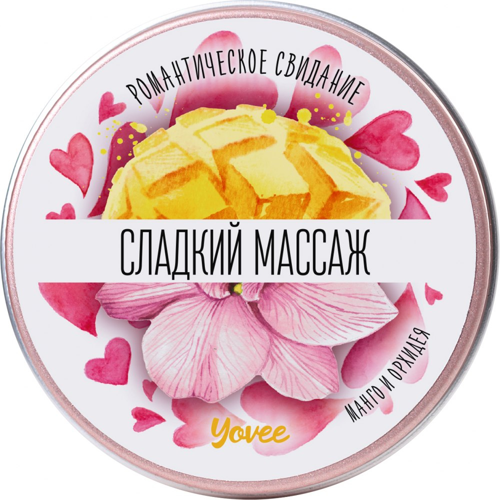 Массажная свеча Yovee сладкий массаж с ароматом манго и орхидея - изысканный аксессуар для романтического свидания. Изготовлена из натуральных масел, которые питают, увлажняют, смягчают кожу и делают её шелковистой. Небанальный сладкий аромат манго и орхидеи остается легким шлейфом, напоминая о проведенных минутах блаженства. Благодаря праздничному дизайну упаковки свеча отлично подходит в качестве презента.