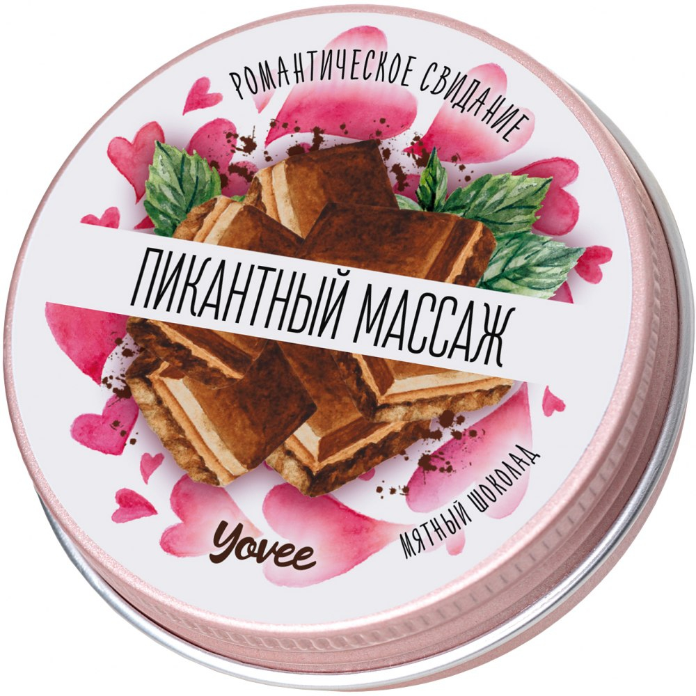 Массажная свеча Yovee согревающий массаж с ароматом мятного шоколада - изысканный аксессуар для романтического свидания. Изготовлена из натуральных масел, которые питают, увлажняют, смягчают кожу и делают её шелковистой. Ненавязчивый аромат мятного шоколада остается легким шлейфом, напоминая о проведенных минутах блаженства. Благодаря праздничному дизайну упаковки свеча отлично подходит в качестве презента.