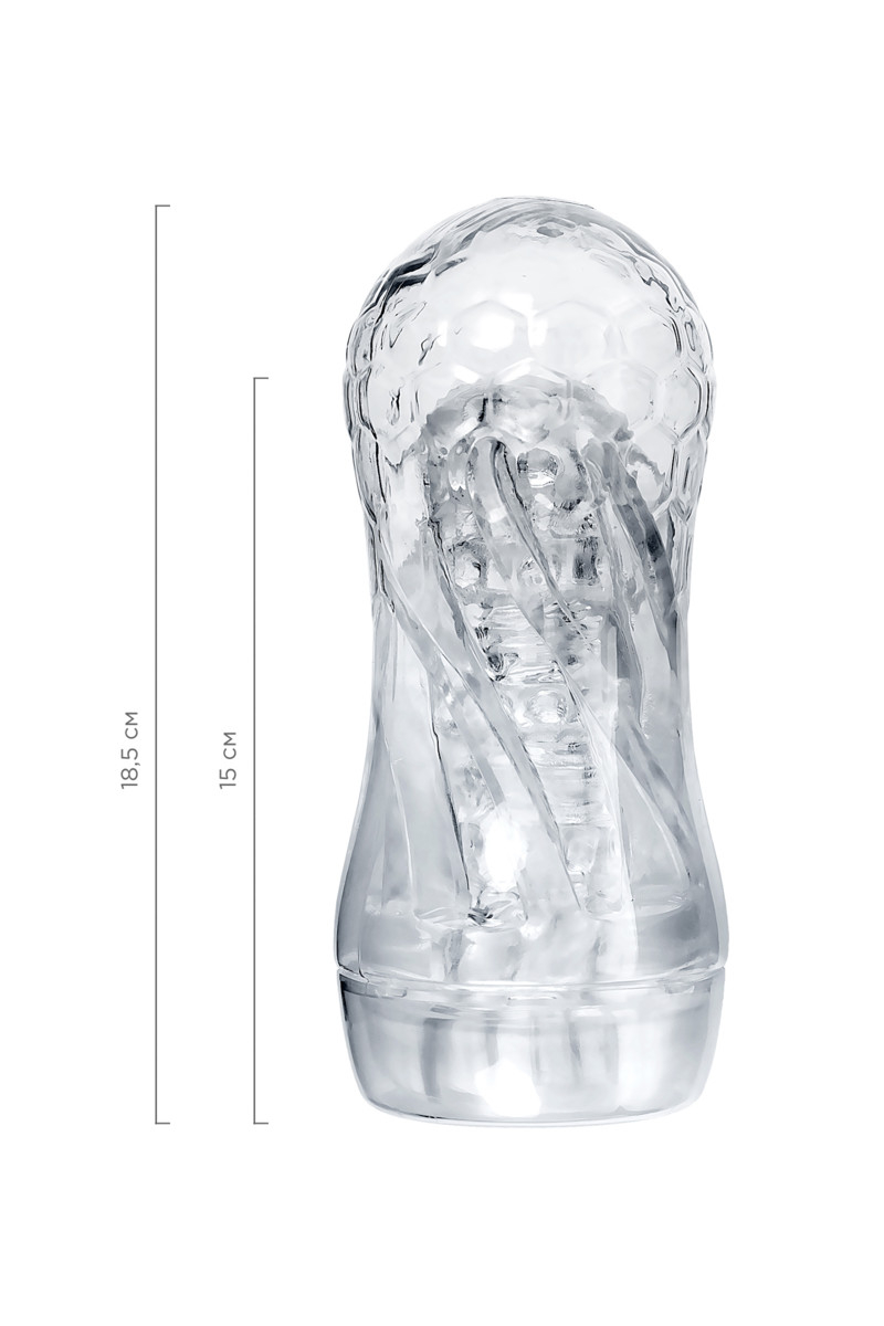 Мастурбатор абсолютно прозрачный, вы будите видеть все происходящие. Удобная прозрачная обтекаемая пластиковая туба удобно размещается в мужской руке за счет приталенной формы. Крышка в основании сохранит гигиеничность вашей игрушки. Этот контейнер удобен для хранения игрушки и для перевозки. В верхней части тубы есть отверстие, с помощью него вы можете контролировать вакуум в тубе, тем самым усилив ощущения при мастурбации, просто попробуйте его закрывать пальцем и открывать.