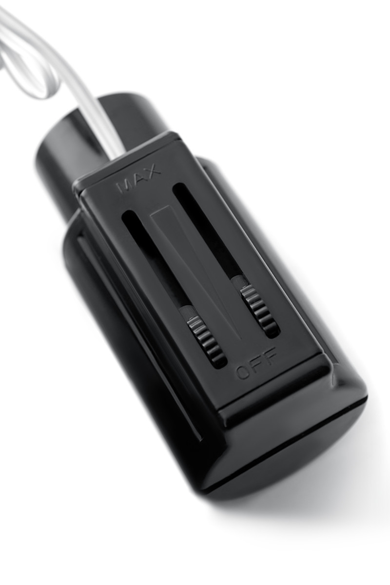 Выносной пульт управления работает от 4 батареек АА, батарейки в комплект не входят. Одно колесики регулирует интенсивность ротации и вибрации, а второе регулирует громкость стонов.