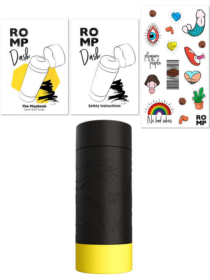 В комплекте Компактный мастурбатор ROMP Dash, краткое руководство, инструкция по безопасности.