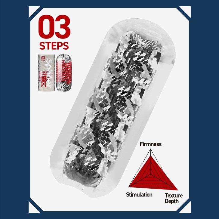 Внутри вас ждет бархатистая мягкая текстура, гарантирующая наслаждение уже с первых секунд использования. Steps - выбор для любителей текстурированной и яркой стимуляции: по всей длине внутренней поверхности располагается зубчатый рельеф, ярко выраженные грани и ребра. При движении Steps дарит ощущение интенсивного массажа и мощного трения, что максимально стимулирует чувствительные зоны и предоставляет сверхяркие ощущения. Он подойдет ценителям явного, даже слегка “агрессивного” контакта, и желающим получить интенсивный опыт.